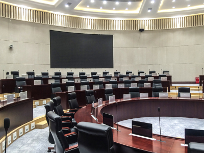 為了讓會議人員能夠有效溝通及發(fā)言,實施二錐環(huán)繞立體音效來布置現(xiàn)場。